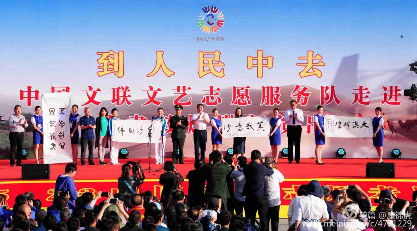 | 2018年5月18日晚,"到人民中去"中國文聯(lián)文藝志愿者小分隊"一帶一路"線走進敦煌慰問演出在美麗的鳴沙山下的月牙泉山門廣場舉行,敦煌市民和中外游客數(shù)千人觀看了精彩演出。這次演出陣容強大,大腕云集。姜昆、戴志誠、斯琴高麗、云飛、平安等藝術家一起為敦煌人民獻上一場視聽盛宴。演出前,慰問團的藝術家們給敦煌市文聯(lián)、鳴沙山月牙泉景區(qū)、環(huán)衛(wèi)工人、駐敦部隊官兵贈送書法作品。 主持人:戴志誠(中國廣播藝術團相聲表演藝術家、國家一級演員、中國文藝志愿者協(xié)會理事)斯琴高麗(青年歌手、演員) 1.舞蹈《吉祥敦煌〉 表演:西北師范大學敦煌學院學員 2.歌曲《我愛你中國》《姐姐》演唱:平 安(青年歌手、CCTV直通春晚全國總冠軍、浙江衛(wèi)視“中國好聲音”天籟之音、中國文藝志愿者協(xié)會會員) 3.街舞《融》(專門為此次活動創(chuàng)作) 表演:中國舞協(xié)街舞委員會甘肅聯(lián)盟 4.歌曲《一杯美酒》(一朵可愛的玫瑰花》 演唱:王凱(陸軍政治工作部文工團青年歌唱家、中國文藝志愿者協(xié)會會員、意大利貝里尼國際聲樂大賽金獎獲得者) 5.秦腔《打柴勸弟》、陜北民歌《東方紅》 演唱;李小鋒(秦腔表演藝術家、國家一級演員、中國戲劇“梅花獎”獲得者) 6.雜技《肩上芭蕾》表演:吳正丹(雜技表演藝術家、中國雜技家協(xié)會副主席、中國文藝志愿者協(xié)會理 事、國家一級演員) 魏葆華(廣州軍區(qū)戰(zhàn)士雜技團團長、國家一級演員) 7.歌曲《犯錯》《斯琴高麗的傷心》 演唱:斯琴高麗(青年歌手、演員) 8.舞蹈《巾幗從軍記》 表演:中國農(nóng)村少兒舞蹈美育工程——七里鎮(zhèn)學區(qū)小學部舞蹈社團學生 9.歌曲《絲路敦煌》《乘夢飛翔》演唱:王喆(火箭軍政治工作部文工團女高音歌唱家、CCTV“青歌賽”銀獎獲得 者,CCTV光榮綻放“新十大女高音歌唱家”、中國文藝志愿者協(xié)會會員) 10.魔術脫口秀《歐買嘎》 表演:歐陽(青年魔術師、中國曲藝家協(xié)會會員) 11.舞蹈《絲路回眸》 (專門為此次活動創(chuàng)作)表演:山種(中國歌劇舞劇院舞蹈家、中國舞蹈家協(xié)會副主席、中國文藝志愿者協(xié)會理事、國家一級演員) 12.朗誦《絲路情長》 ( (專門為此次活動創(chuàng)作) 作者:陳維東(青年詞作家)朗誦:姜昆(中國曲藝家協(xié)會主席、中國文藝志愿者協(xié)會主席、相聲表演藝術家、國家一級演員);裴斐(中央電視臺資深記者、中國文藝志愿者協(xié)會理事)戴志誠(中國廣播藝術團相聲表演藝術家、國家一級演員、中國文藝志愿者協(xié)會理事);王喆(火箭軍政治工作部文工團女高音歌唱家CCTV“青歌賽”銀獎獲得者、CCTV光榮綻放新十大女高音歌唱家”、中國文藝志愿者協(xié)會會員) 13.歌曲《云在飛》《鴻雁》演唱:云飛(蒙古族青年歌手、 CCTV星光大道年度亞軍) 14.相聲《樂在其中》表演:姜昆(中國曲藝家協(xié)會主席、中國文藝志愿者協(xié)會主席、相聲表演藝術家、國家一級演員) 戴志誠(中國廣播藝術團相聲表演藝術家、國家一級演員、中國文藝志愿者協(xié)會理事) 15.歌舞《共筑中國夢》 演唱:王苗王凱伴舞:西北師范大學敦煌學院學員 16.尾聲《到人民中去》 演唱:全體隊員 源自:敦煌市文化館 編輯:康錦虎 |