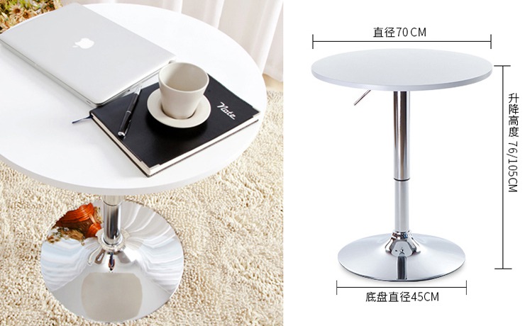 吧桌:不銹鋼底盤,支架。桌面直徑70CM,升降高度76CM--105CM。